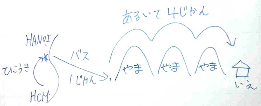 そこからバスで1時間、そしてベトナムの炎天下の中を荷物を抱えながら4時間歩きたくない。