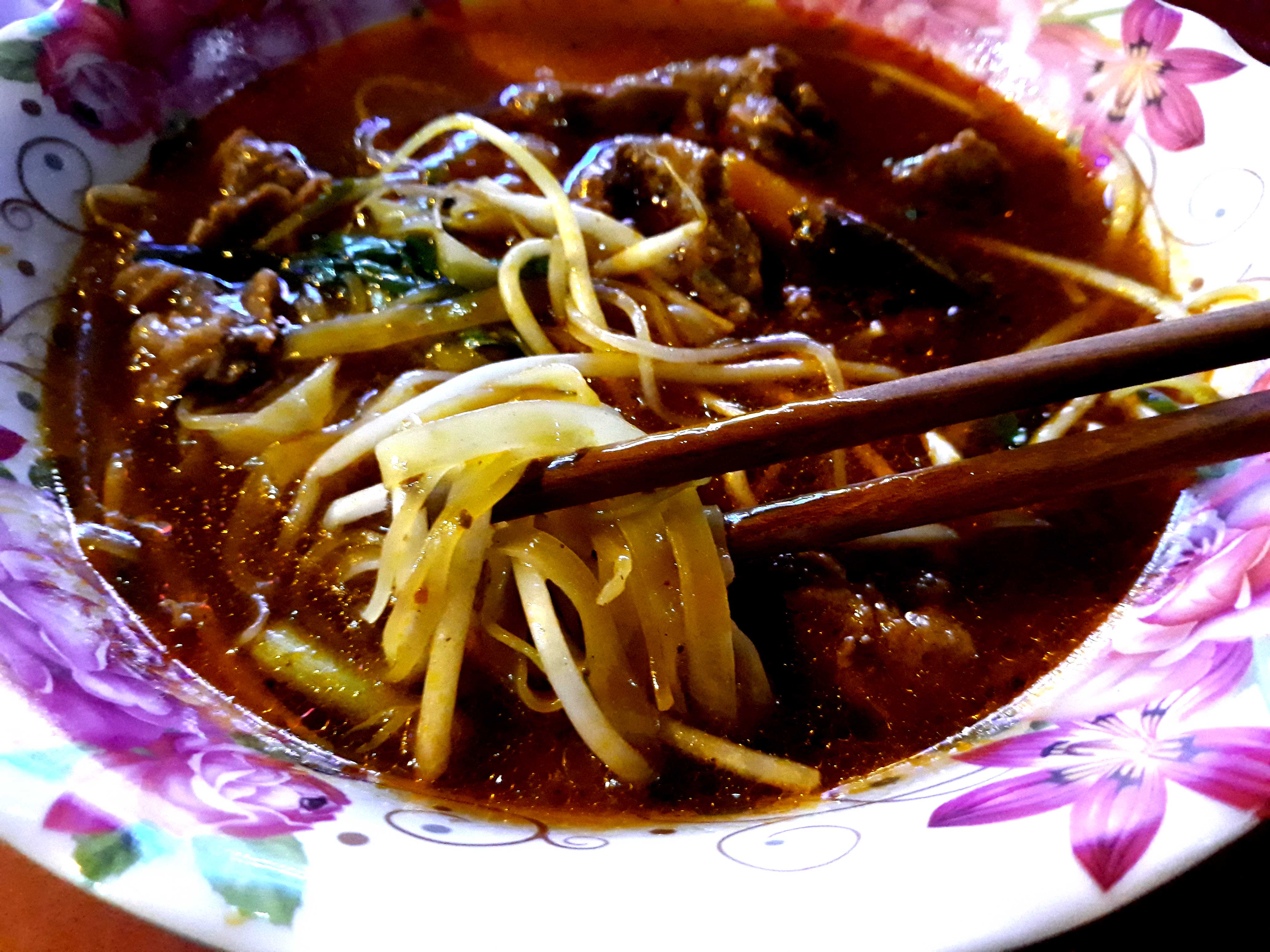 麺は黄色い小麦麺と、細いお米の麺などを選べる。